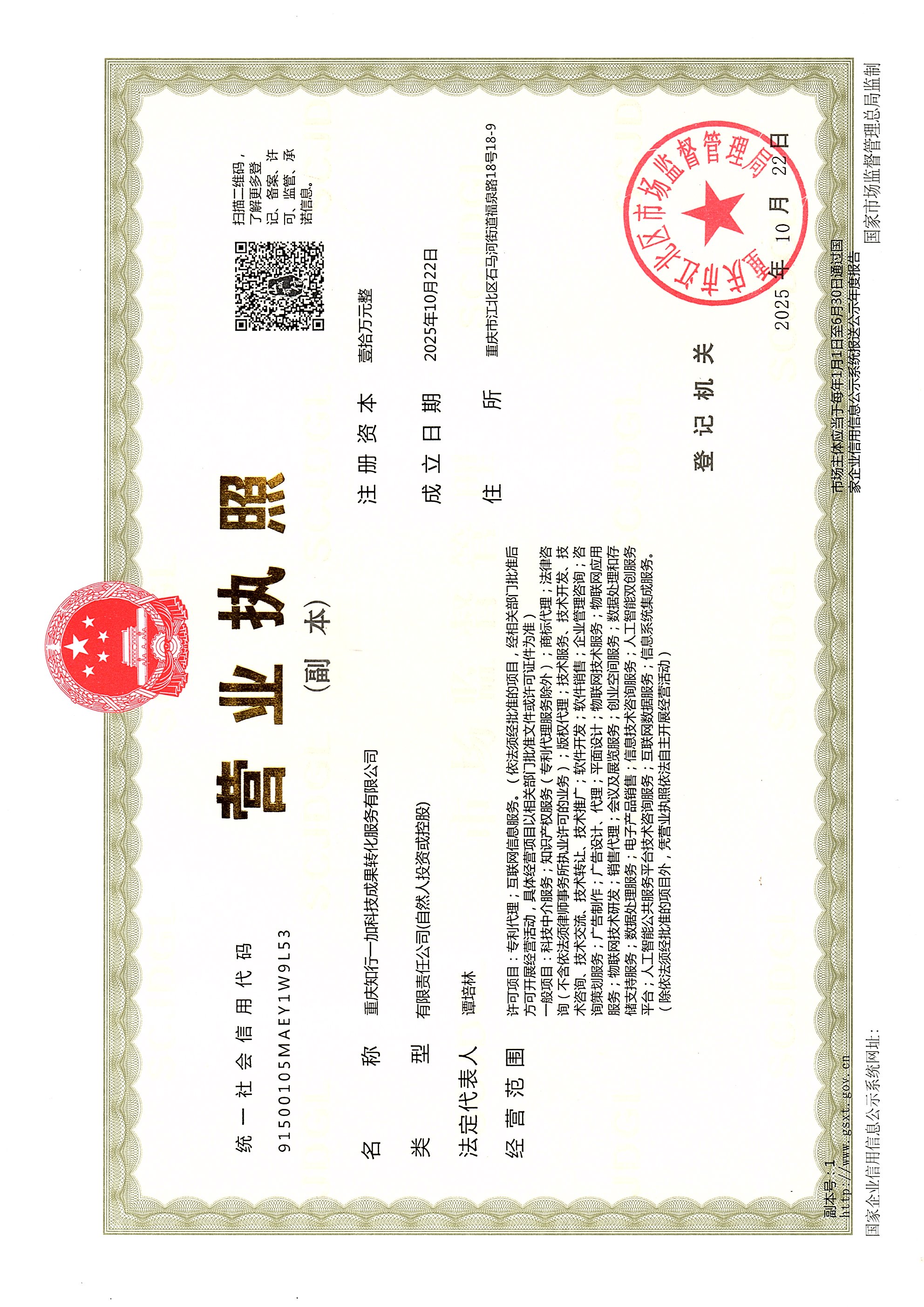 体系内三大专业实体紧密协同:重庆一加知识产权代理有限公司作为管理中枢,负责整体战略统筹与资源协调;重庆知行一加知识产权服务有限公司专注于知识产权运营与成果转化;重庆志一加诚专利代理事务所(普通合伙)作为国家知识产权局正规批准设立的代理机构,专业负责专利的确权、维护与全生命周期管理。